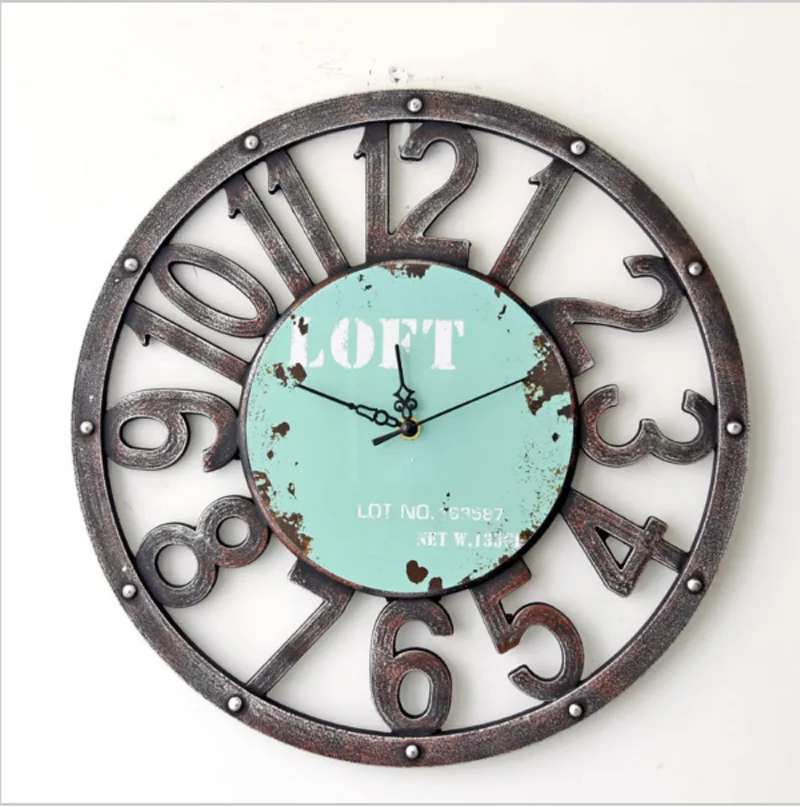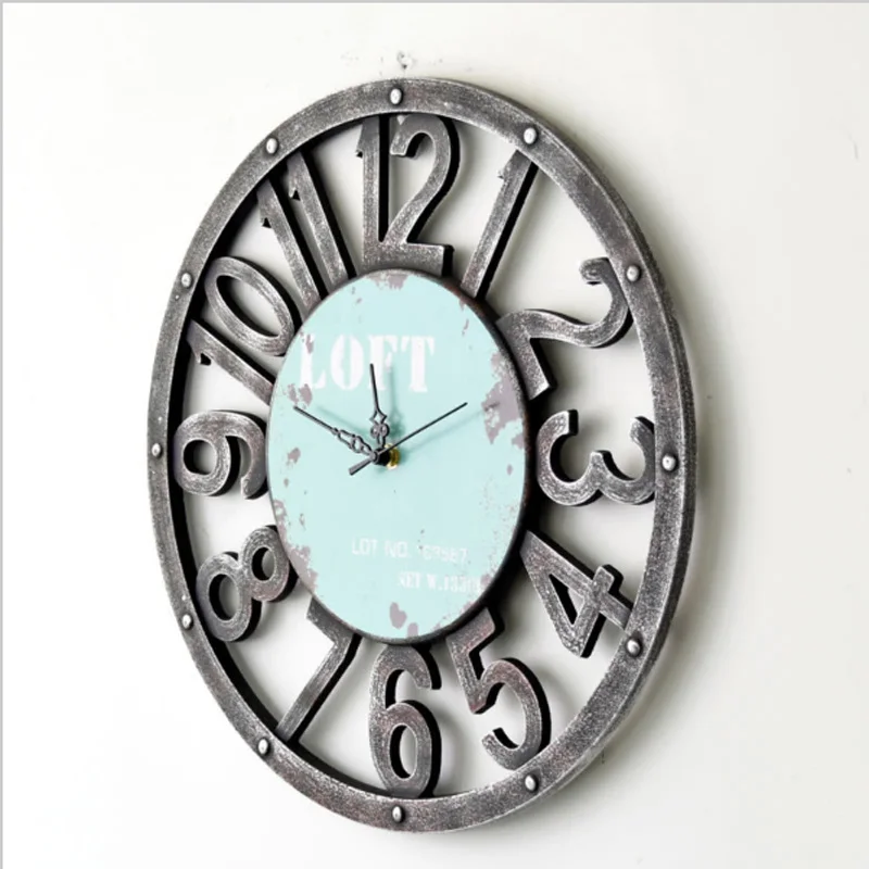 BEST QUALITY Large Creative Retro Rural Nostalgia Wall Clock Home Decor Time Vintage Hollowed out Watch loft Clo