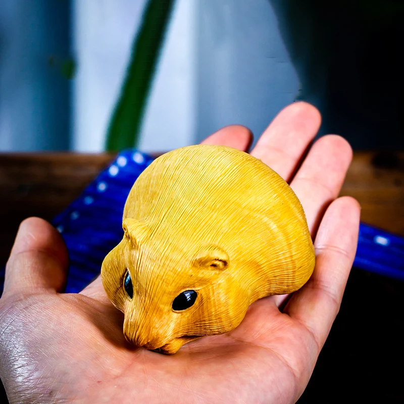 Lucky Animal Wood Carving Rat Hamster Incense Insert Wood Statue Animal Statue Home Wall Decors Box