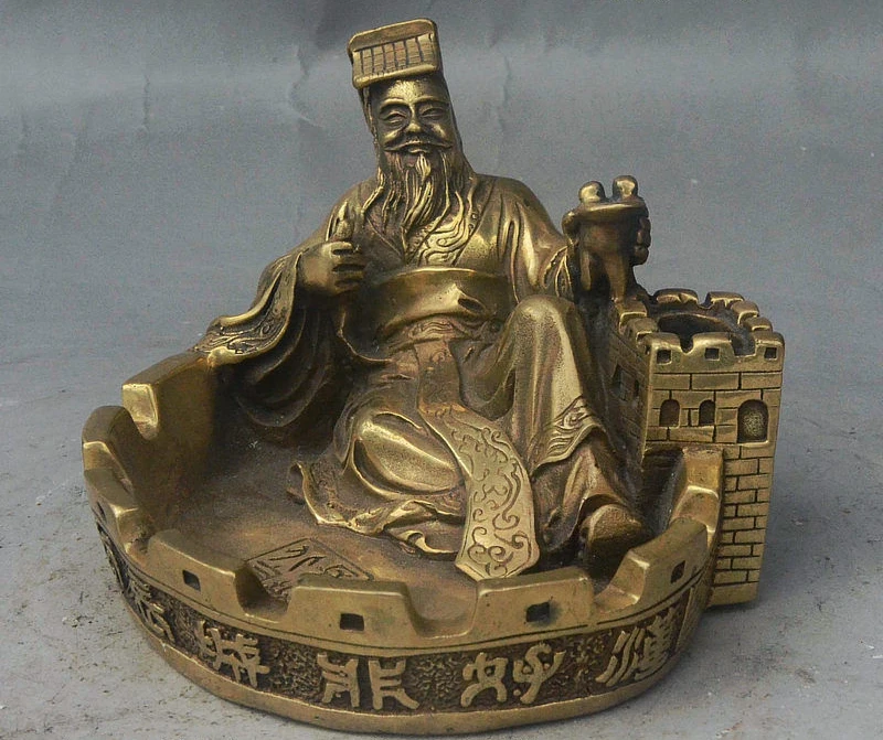 6" Folk China Palace Bronze First Emperor of Qin Great Wall Brush Washer Ashtray