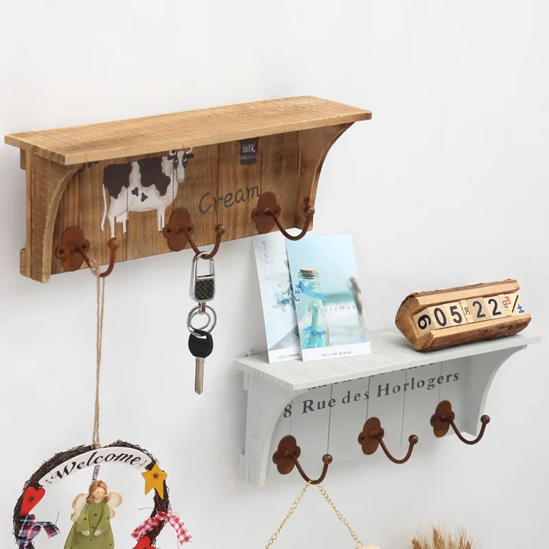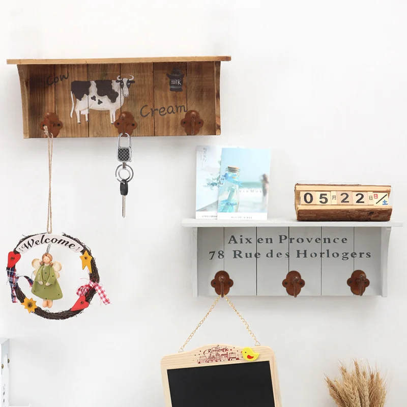 European Retro Cow Rack Wall Key Hanger Creative Wood Decorative Hooks Key Holder Wall Home Storage